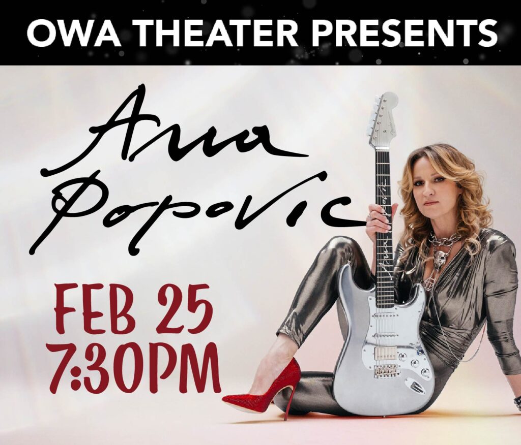 Ana Popović brings her award-winning blend of electric funk, blues groove, and unmatched guitar mastery to OWA Theater on February 25th! With powerhouse vocals, a magnetic stage presence, and a résumé that includes seven Blues Music Award nominations, Ana delivers a show that hits hard. Don’t miss one of modern blues’ most explosive performers, live on our stage! Grab your tickets today: