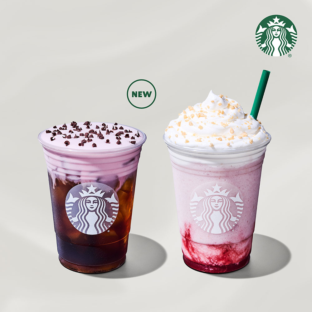Made with oat milk, vanilla, and strawberry purée, topped with strawberry cold foam and finished with a caramel drizzle.