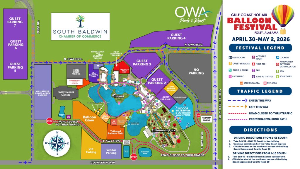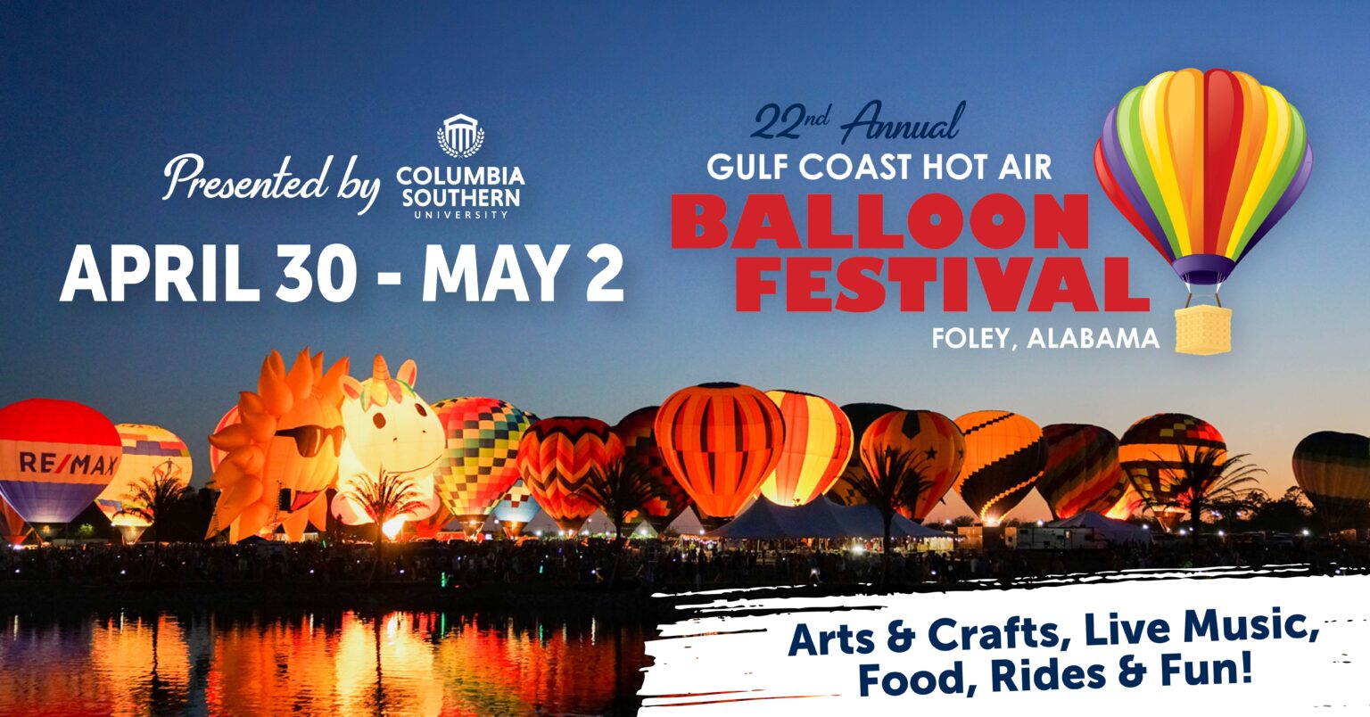 The Gulf Coast Hot Air Balloon Festival at OWA Parks & Resort benefits the South Baldwin Chamber of Commerce and is presented by Columbia Southern University.