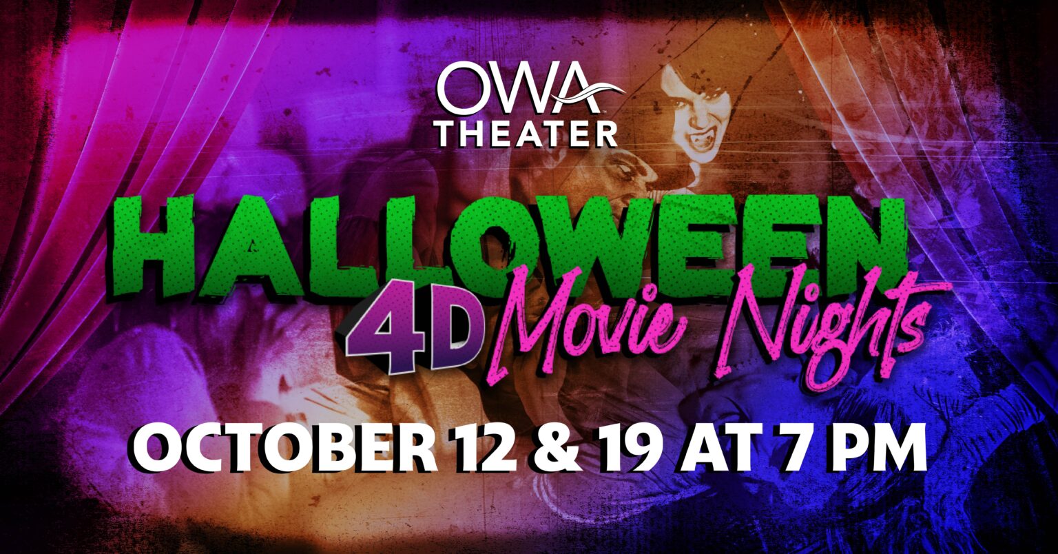 Halloween chills come alive at OWA Theater with Halloween 4-D Movie Nights, where iconic horror films meet immersive 4-D effects for a one-of-a-kind experience!