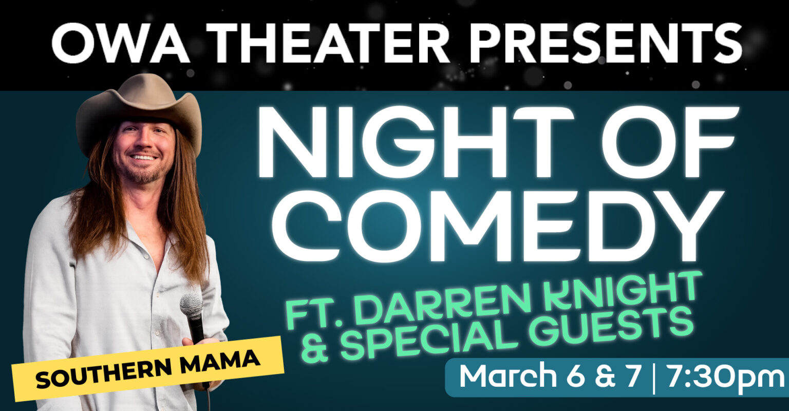 Get ready for two nights of nonstop laughs as Darren Knight, also known as Southern Mama, brings his stand-up comedy to OWA Theater on March 6th and 7th. Joined by special guest comedians, Darren delivers a high-energy show packed with relatable humor and crowd-favorite moments.