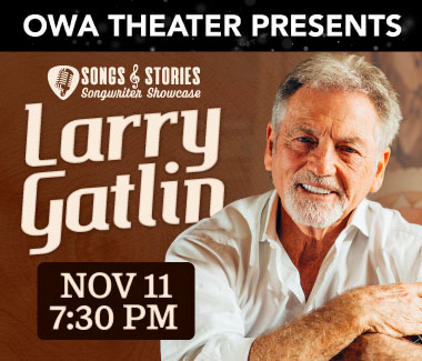 OWA Theater’s featured performances include Country music icon Larry Gatlin on Tuesday, November 11, 2025 at 7:30 p.m. This esteemed songwriter and solo performer (formerly of the group Larry Gatlin & the Gatlin Brothers) will take the stage for a one-night only “Stories & Songs” event. Known for his soulful voice, signature harmonies and a legacy of chart-topping hits, Gatlin will share not only his songs but the stories that inspired them.