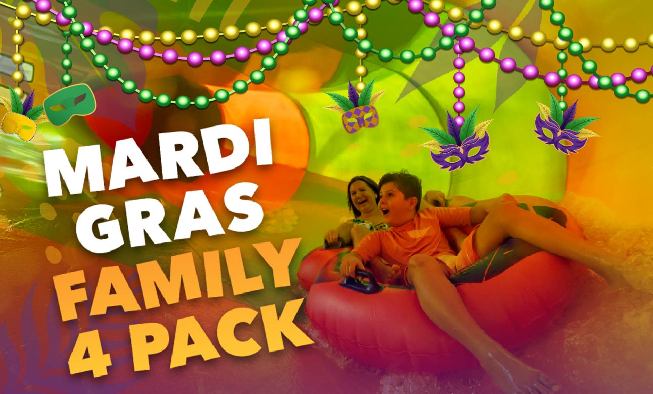 Celebrate Mardi Gras at Tropic Falls, for a limited time, grab a Family 4 Pack for just $160.