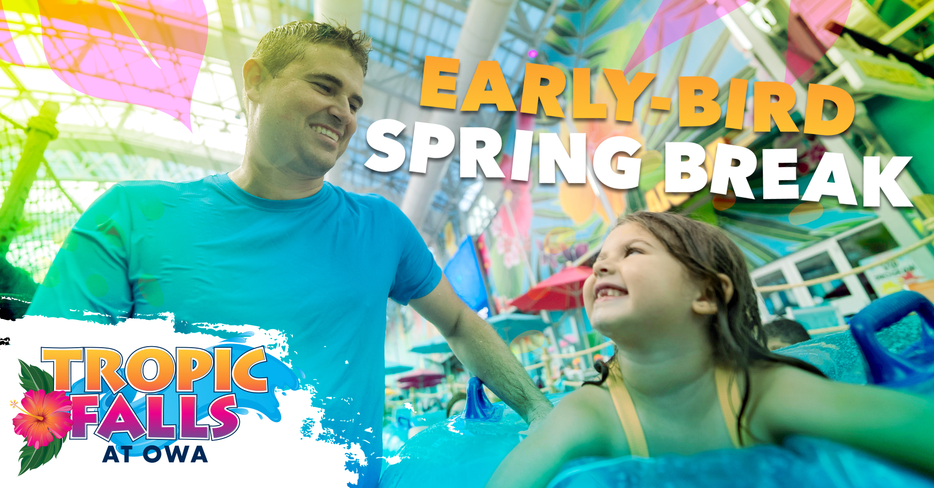 Plan your Spring Break early and save at Tropic Falls! With the Early Bird Spring Break Special, save $15 on General Admission or $60 on a Family 4-Pack.