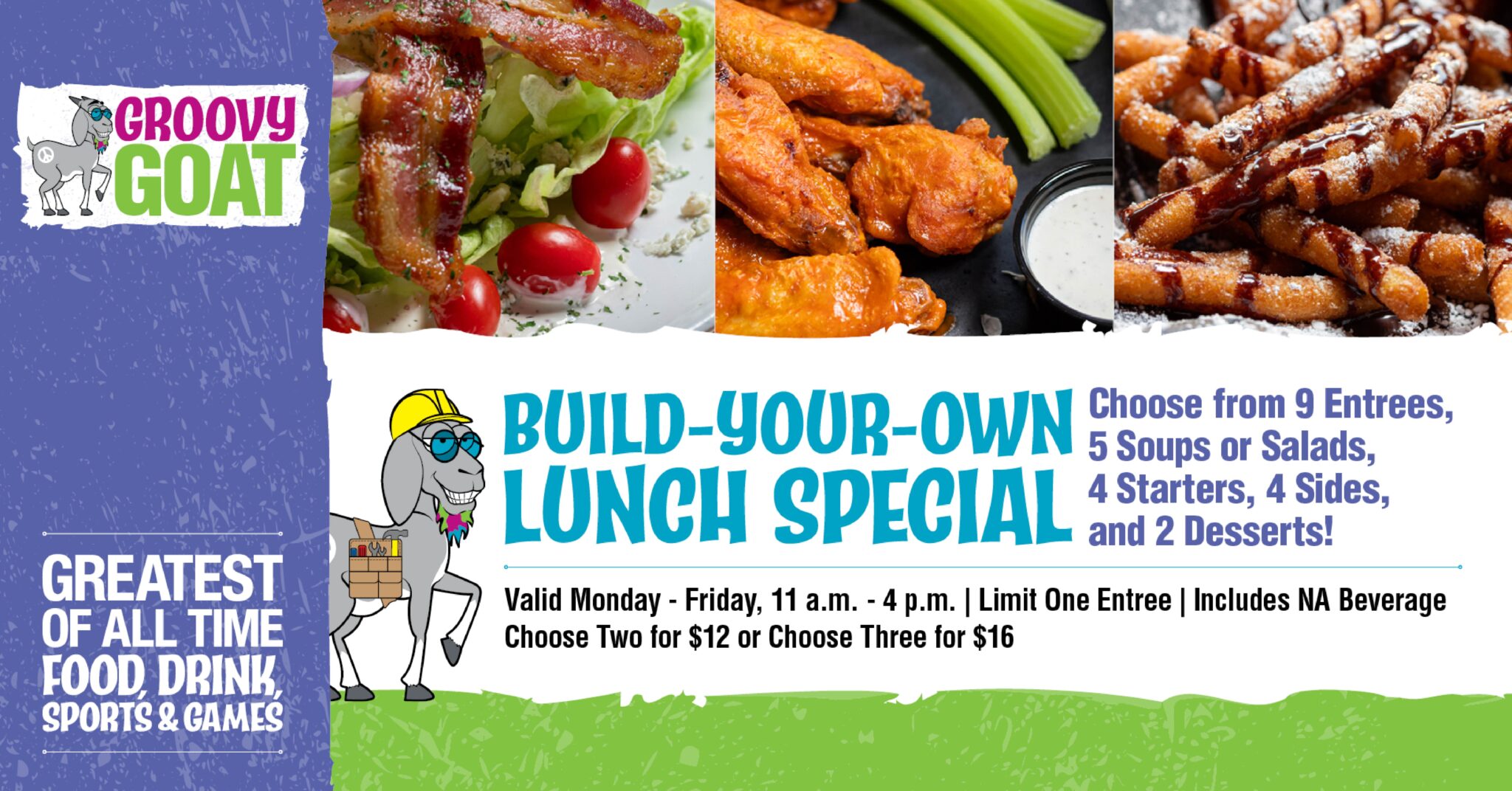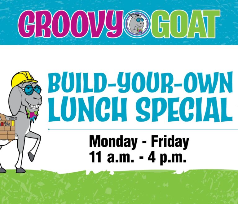Make lunch plans at Groovy Goat with their $12 Lunch Specials, available Monday through Friday from 11:00am – 4:00pm. It’s the perfect option for a quick bite, a casual meet-up, or a relaxed midday break in Downtown OWA!