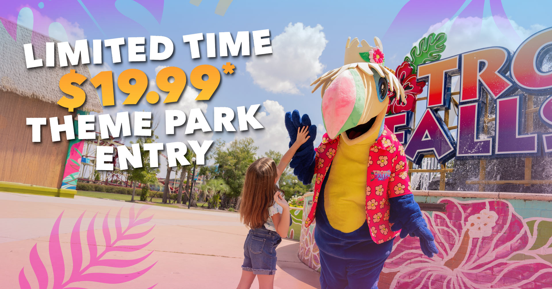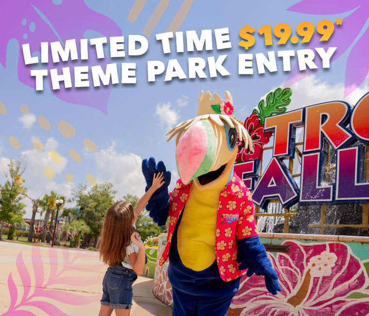 Celebrate the Hot Air Balloon Festival with a limited $19.99 Theme Park ticket at Tropic Falls. Friday (5/1) from 4–9pm or Saturday (5/2) from 10am–9pm, this limited-time offer gives you access to rides, attractions, and midway fun during festival weekend. It’s the perfect way to extend your day of celebration with big thrills and family favorites. Theme Park admission only. Food, beverages, retail, and waterpark access sold separately.