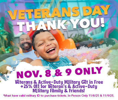Military families and friends enjoy 25% off day passes when purchased by a Veteran or Active-Duty Military member. Spend the day riding slides, floating the lazy river, and making memories together inside our tropical escape.