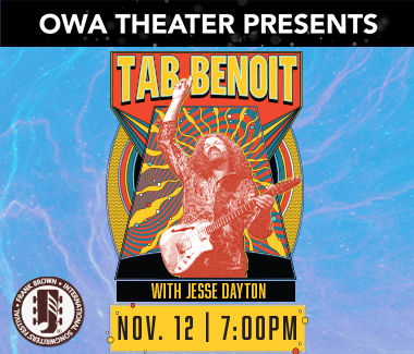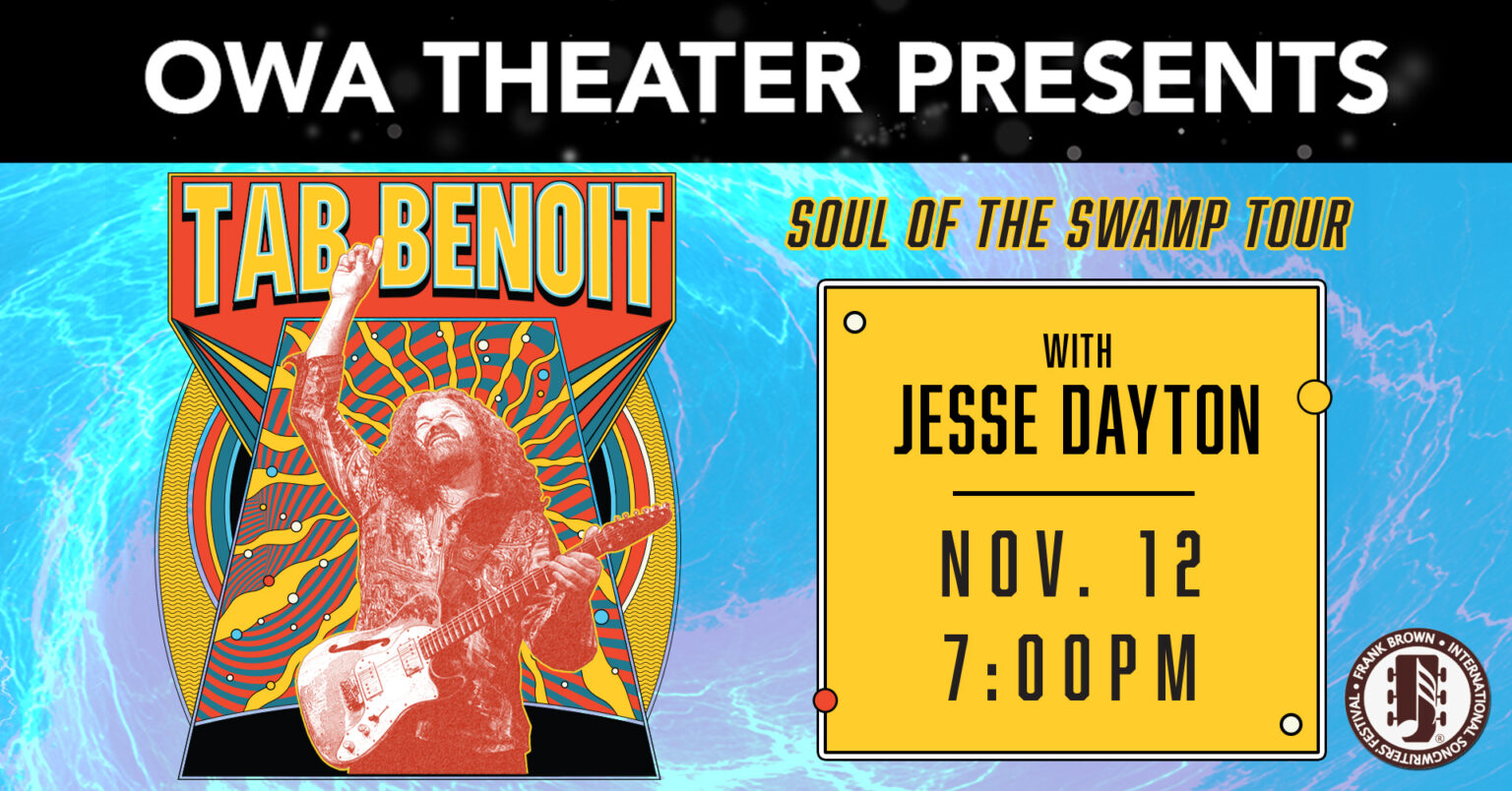 Join us on November 12th for a night of swampy soul and deep blues as Tab Benoit brings his Soul of the Swamp Tour to OWA Theater with special guest Jesse Dayton.